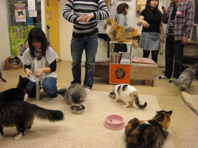 Este es un Café para gatos en Osaka, Japón.